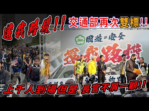 重機上國道的法條自從2011年立法院三讀通過後 交通部在這12年以來不斷的以各種方式強力阻擋 當年那群爭取路權的前輩如今也都白髮蒼蒼 時至今日交通部依然用盡各種手段來打壓弱勢用路人 不但讓台灣的道路血流成河更讓台灣被國際點名為交通危險地區 幾週前國內的職業駕駛因為不滿違停懲罰過高而發起了包圍交通部的行動 該次行動過後交通部不但立刻暫緩相關措施,甚至還想修法放寬違規罰則 這次全台灣的二輪交通公民一樣發起了包圍交通部的行動 但是願意幫職業駕駛違規護航的交通部,對上千位到場的二輪公民們卻拿出全然不同的雙標嘴臉 再次的重重打臉那些認為「理性溝通合法集會」就能拿回路權的人們 也再次的讓所有人看到這個單位寧願人民繼續在路上血流成河也不願改變的事實